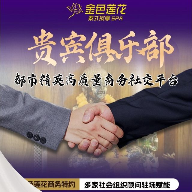 天河石牌金色莲花(泰式按摩、品茗、私董会)核心商圈30+旗舰店、180万都市精英选择!特邀社会组织顾问主理私董会