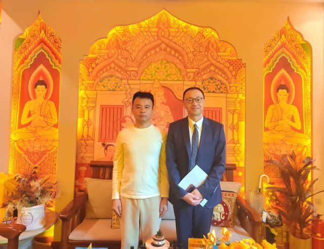 刘银波与华侨Erik Liu(澳大利亚投资银行bostonglobal执行董事)在广州洽谈